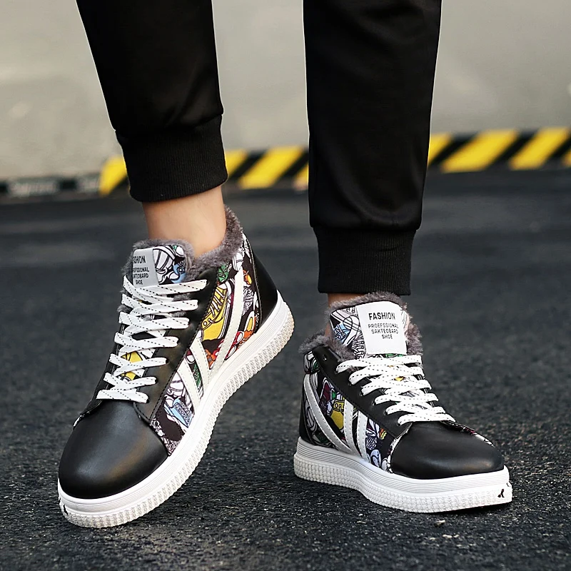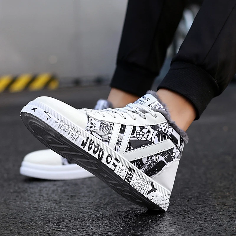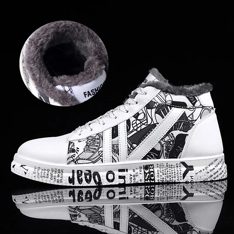 New Plus Size Winter Men Shoes Warm Plush Casual Shoes Man Waterproof PU Sneakers Male High Top Foo