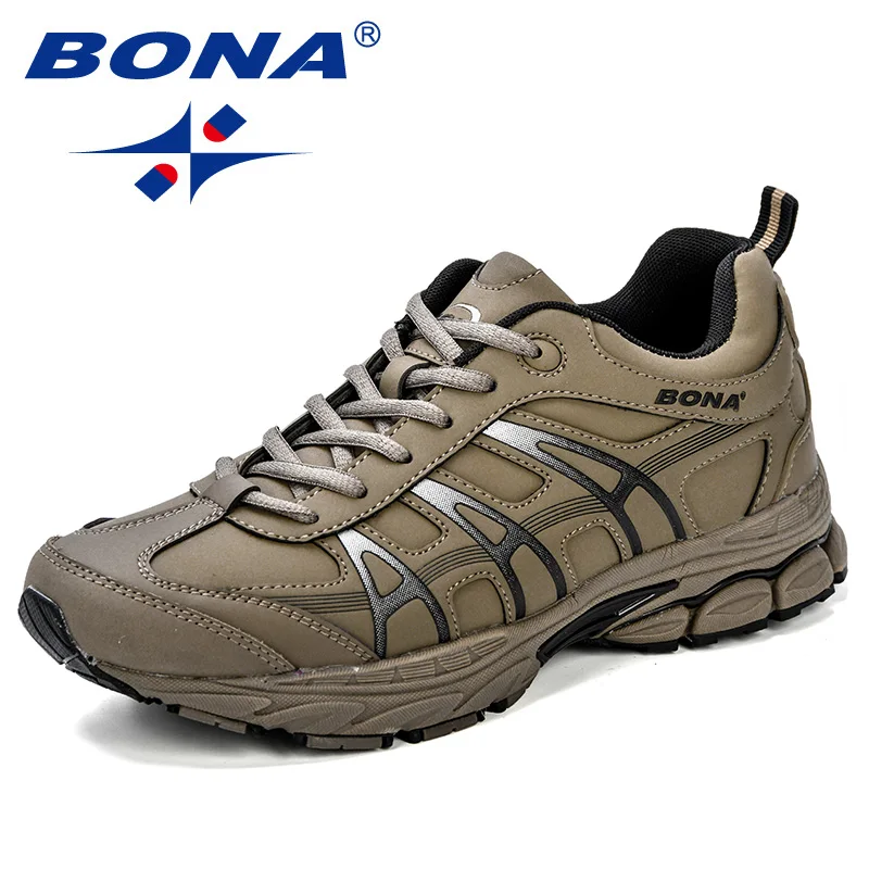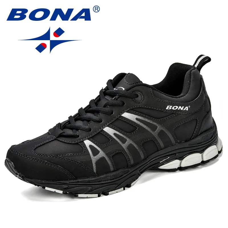 BONA 2019 New Designer Men Running Shoes Cow Split Krasovki Lace Up Non-Slip Sport Shoes Men Sneakers Men Zapatillas Hombre Shoe