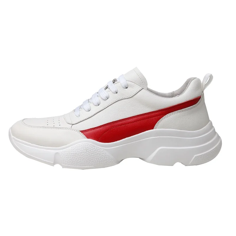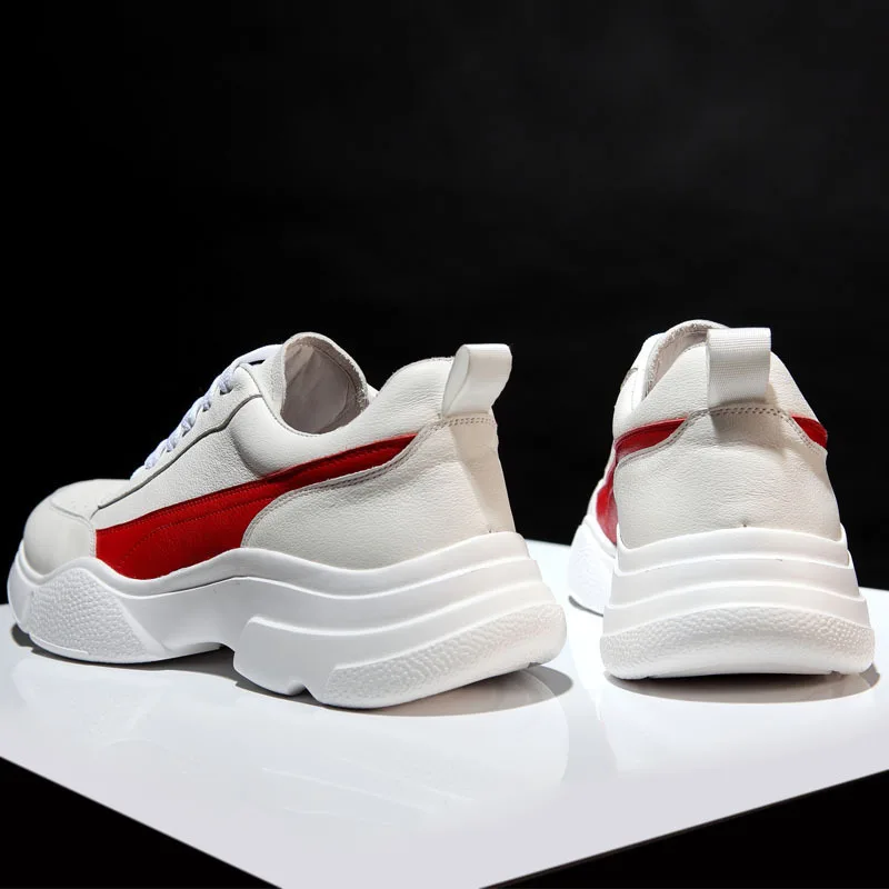 Addition Information of White Genuine Cow Leather Platform Sneakers Men Trainers Tennis Running Chunky Sport Shoes Waterpro